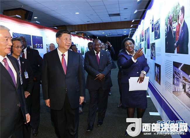 開幕式前,習(xí)近平和拉馬福薩共同參觀中南科技創(chuàng)新合作成果圖片展。