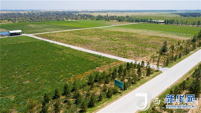 這是位于庫(kù)布其沙漠中的億利集團(tuán)阿木古龍甘草健康產(chǎn)業(yè)園(7月11日無(wú)人機(jī)拍攝)。 新華社記者 彭源 攝