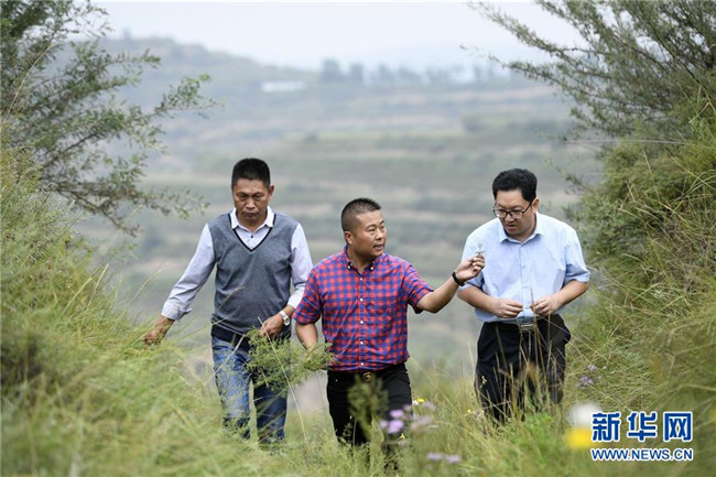 來自福建長樂的林錦云(中)在寧夏固原市河川鄉(xiāng)與福建對口支援農(nóng)業(yè)專家(右)交流牡丹生長情況(8月28日攝)。2014年,林錦云通過土地流轉(zhuǎn)方式,承包了河川鄉(xiāng)1.5萬畝荒山,打造油用牡丹生產(chǎn)基地。目前,林錦云種下的7600畝油用牡丹已經(jīng)開始產(chǎn)生效益,公司就近吸納村民300多人就業(yè),其中建檔立卡戶39戶,人均年收入2萬多元。 新華社記者王鵬攝