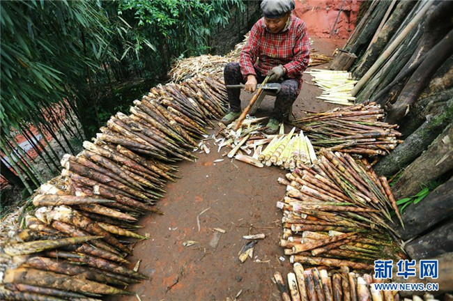 10月14日,在貴州赤水市寶源鄉(xiāng)聯(lián)華村,竹農(nóng)加工剛?cè)さ孽r筍。金秋時(shí)節(jié),貴州省赤水市寶源、兩河口、丙安等鄉(xiāng)鎮(zhèn)種植的5萬余畝大竹筍迎來收獲季。當(dāng)?shù)刂褶r(nóng)加緊采挖竹筍,進(jìn)行加工后外銷。素有“中國竹子之鄉(xiāng)”的赤水市,現(xiàn)有竹林面積132.8萬畝。竹產(chǎn)業(yè)已經(jīng)成為當(dāng)?shù)孛撠氃鍪盏闹饕乐弧?(王長育 攝)