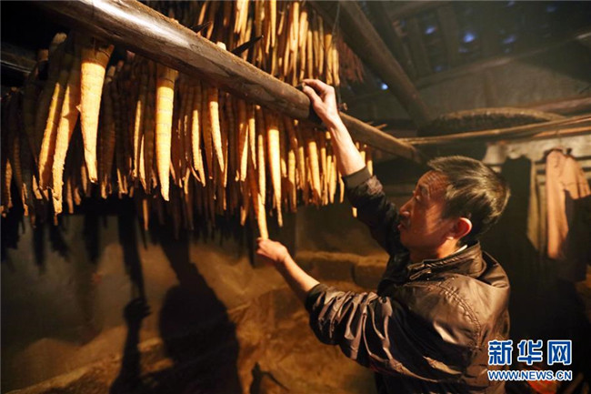 10月14日,在貴州赤水市寶源鄉(xiāng)聯(lián)華村,竹農(nóng)翻看烘烤的竹筍。金秋時(shí)節(jié),貴州省赤水市寶源、兩河口、丙安等鄉(xiāng)鎮(zhèn)種植的5萬余畝大竹筍迎來收獲季。當(dāng)?shù)刂褶r(nóng)加緊采挖竹筍,進(jìn)行加工后外銷。素有“中國竹子之鄉(xiāng)”的赤水市,現(xiàn)有竹林面積132.8萬畝。竹產(chǎn)業(yè)已經(jīng)成為當(dāng)?shù)孛撠氃鍪盏闹饕乐弧?(王長育 攝)