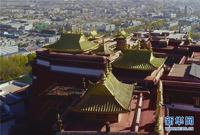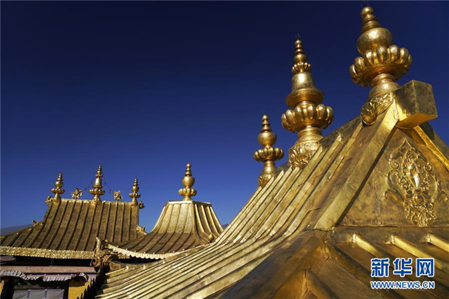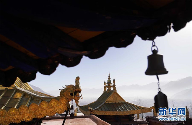 修繕后的布達(dá)拉宮金頂群(11月7日攝)。