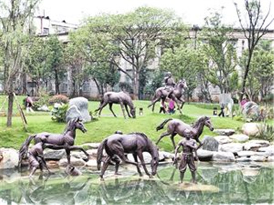 今年6月30日,《翠湖周邊歷史文化片區(qū)整治提升規(guī)劃》中的翠湖洗馬河水系恢復及帶狀公園對外開放,消失許久的“柳營洗馬”景觀重現(xiàn)翠湖邊,蜿蜒的河道從兩岸柳蔭下穿過,無論是具有明清歷史特色的兵馬奔騰的青銅雕塑,還是古樸典雅的活字印刷,抑或是獨特的噴泉造型,無不重現(xiàn)了600多年前沐英“柳營春試馬、虎帳夜談兵”的歷史文化,吸引著過往市民和游客,被稱為“昆明之眼”的翠湖,因其更具亮色。