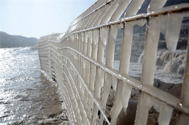 黃河壺口瀑布現(xiàn)冰掛景觀
