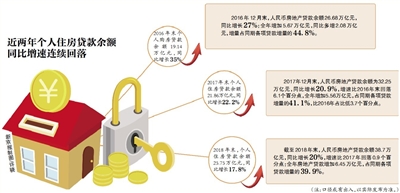 2018年全年房地產(chǎn)貸款增加6.45萬億元,占同期各項(xiàng)貸款增量的39.9%,比2017年占比低1.2個(gè)百分點(diǎn)