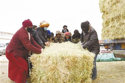2月25日,玉樹(shù)藏族自治州玉樹(shù)市上拉秀鄉(xiāng)日瑪村,寒風(fēng)瑟瑟,村民內(nèi)心卻是無(wú)比溫暖,黨委政府下?lián)艿娘暡萘弦慌慌乩\(yùn)到了日瑪村,村民自發(fā)組織卸載搬運(yùn)飼草料,分到飼草料的牧民,用自家面包車(chē)?yán)\(yùn)飼料,臉上掛滿(mǎn)了笑容。