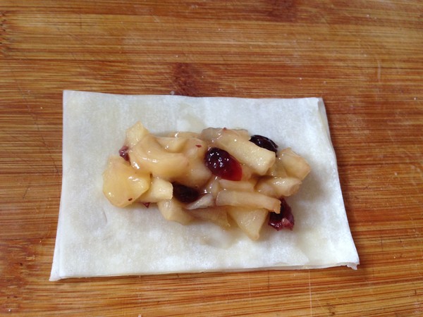主料:蘋果1個 餛飩皮30張 蔓越莓干20克 黃油(餡料)8克
