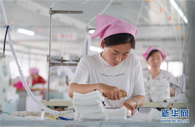 河北省鹽山縣在充分發(fā)揮自身交通區(qū)位優(yōu)勢的同時加強勞動技能培訓,積極承接雄安新區(qū)產(chǎn)業(yè)轉(zhuǎn)型升級項目,鼓勵勞動密集型無污染企業(yè)進村辦廠,目前已吸納勞動力1.7萬人,人均年增收2萬多元。 新華社發(fā)(傅新春 攝)