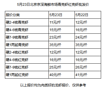 水產(chǎn)養(yǎng)殖網(wǎng)今早上傳的5月23日北京京深海鮮市場(chǎng)紅殼蝦青殼蝦批發(fā)價(jià)顯示,個(gè)頭最小(2-4錢/只)、最便宜的小龍蝦批發(fā)價(jià)僅需11元/斤,比昨天又降了1元。而湖南、江蘇、廣東等地的價(jià)格也和北京差不多,武漢甚至低至9元/斤。