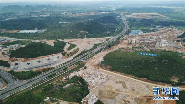 這是5月19日無人機(jī)拍攝的貴州省貴安新區(qū)“華為云”數(shù)據(jù)中心建設(shè)現(xiàn)場(以道路為界右)和騰訊貴安七星數(shù)據(jù)中心(左)。新華社記者 歐東衢 攝
