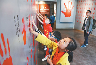 圖為孩子們在建川博物館參與互動游戲。
