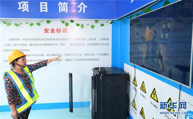 6月5日,重慶化龍橋超高層項目工人在VR安全體驗館內(nèi)通過特種標(biāo)識識別系統(tǒng)學(xué)習(xí)安全標(biāo)識。新華社記者 王全超 攝