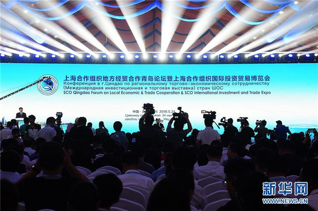 這是5月24日拍攝的首屆上海合作組織地方經(jīng)貿(mào)合作青島論壇暨上海合作組織國(guó)際投資貿(mào)易博覽會(huì)開(kāi)幕式。