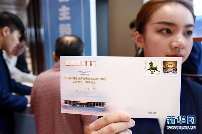 6月9日,工作人員展示上合青島峰會(huì)一周年紀(jì)念封。新華社記者 李紫恒 攝