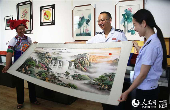 沉下心來(lái)學(xué)習(xí)刺繡的王陸芬朝著自己的小目標(biāo)努力。白天,她向村里的老人們學(xué)習(xí)刺繡技法,學(xué)習(xí)構(gòu)圖、畫(huà)圖,晚上就在家里刻苦練習(xí)。一有機(jī)會(huì),王陸芬就出去考察學(xué)習(xí)。“有一年去上??疾?,看到他們的刺繡還沒(méi)有我做的精細(xì),沒(méi)想到價(jià)格還很貴。”這讓王陸芬堅(jiān)定了自己的想法,在王陸芬的帶動(dòng)下,白沙坡村成立了刺繡協(xié)會(huì),協(xié)會(huì)一開(kāi)始只有26人。2014年2月,技藝日臻成熟的王陸芬成立了“紙藝刺繡農(nóng)民專業(yè)合作社”,2015年成立硯山縣華韻手工刺繡有限公司。