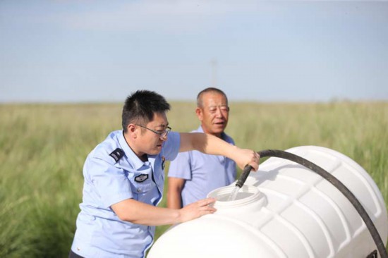 不僅牛存在,轄區(qū)很多群眾都得到過杜文偉的幫助。2018年7月4日,巴音花鎮(zhèn)遭受洪災。晚上10點多,派出所接到求救電話,一位老人和3歲的小孩被洪水圍困。杜文偉迅速帶領民警趕往現場。