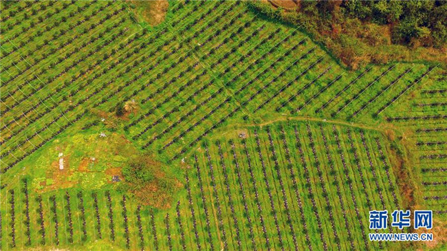 這是廣西融安縣大良鎮(zhèn)古蘭村古蘭屯金桔種植基地(3月21日無人機拍攝)。  新華社記者 黃孝邦 攝