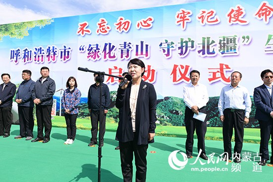 內(nèi)蒙古自治區(qū)黨委常委、呼和浩特市委書記王莉霞宣布生態(tài)建設行動啟動。