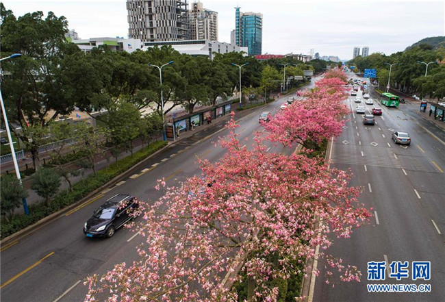初冬時(shí)節(jié),廣西柳州市區(qū)東環(huán)大道、桂柳路等多條道路旁的1萬(wàn)多株美麗異木棉進(jìn)入花期,競(jìng)相綻放的紅色花朵將城市裝扮得格外美麗。 近年來(lái),廣西柳州對(duì)城市進(jìn)行花化、彩化、香化,著力打造生態(tài)花園城市景觀(guān)。