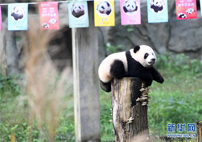 12月22日,重慶動(dòng)物園1只半歲的大熊貓?jiān)趹敉饣顒?dòng)。當(dāng)日,重慶動(dòng)物園為4只大熊貓寶寶“雙雙”“重重”“喜喜”“慶慶”舉行半歲生日慶祝活動(dòng)。4只半歲大熊貓?jiān)陲曫B(yǎng)員的照料下,在熊貓館運(yùn)動(dòng)場內(nèi)玩耍、嬉戲,與市民游客一同過冬至。新華社記者唐奕攝