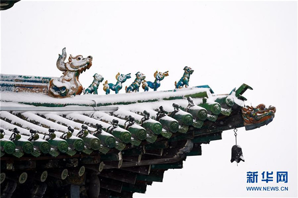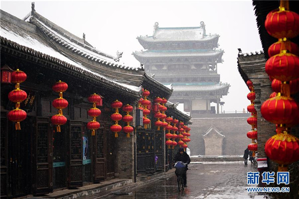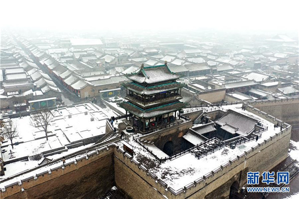 當(dāng)日,山西省平遙縣迎來降雪,雪中的平遙古城銀裝素裹,美景如畫。平遙古城是目前中國(guó)保存最完整的古代縣級(jí)城池之一,1997年被列入世界文化遺產(chǎn)名錄。新華社記者詹彥攝