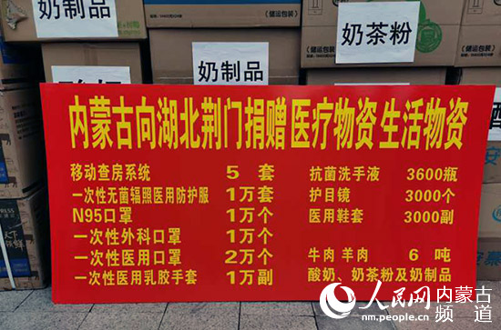 本次捐贈(zèng)的醫(yī)療物資包括,價(jià)值150萬元的移動(dòng)查房系統(tǒng),1萬套一次性無菌輻照醫(yī)用防護(hù)服,1萬個(gè)N95口罩,可用于手術(shù)的1萬個(gè)一次性外科口罩,2萬個(gè)一次性醫(yī)用口罩,1萬副一次性乳膠手套,抗菌洗手液3600瓶,護(hù)目鏡3000個(gè),醫(yī)用鞋套3000副。生活物資包括,牛肉、羊肉各3噸,共計(jì)6噸;酸奶、奶粉及奶制品價(jià)值約10萬元。