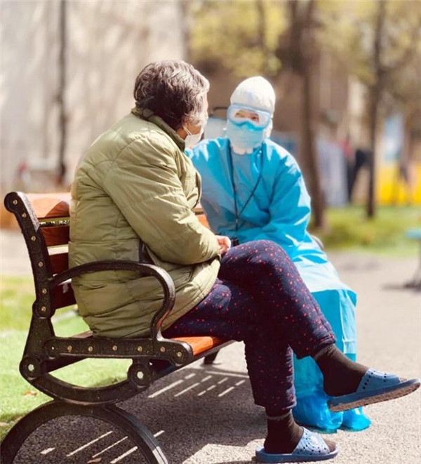 8艙有一位80多歲的老奶奶,中午出來遛彎時看到了醫(yī)療隊護士萬珍妮,主動過來攀談。“你是陜西來的?我看你衣服上寫著西安幾個字了。”“是啊,奶奶,我們是西安國際醫(yī)學中心醫(yī)院來武漢支援的。”萬珍妮通過和奶奶聊天得知,奶奶的父親以前在寶雞工作過很長時間。“我也算半個陜西人了。沒想到在這里還能見到“老鄉(xiāng)”!感謝你們!”奶奶感覺很親切,和萬珍妮話起了“家常”。