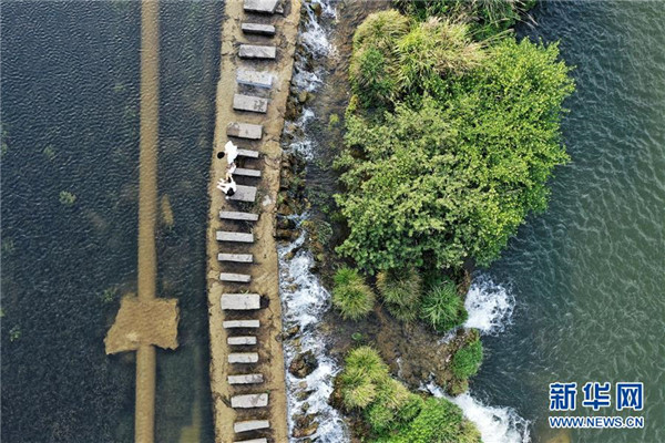 這是5月19日拍攝的貴陽市花溪國家城市濕地公園黃金大道(無人機照片)。近日,貴州省貴陽市花溪國家城市濕地公園黃金大道綠意盎然,美景如畫。新華社記者歐東衢攝