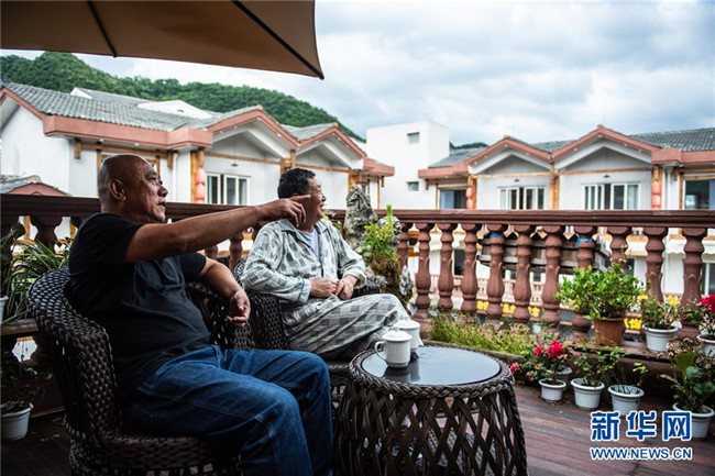 游客在桐梓縣九壩鎮(zhèn)山堡社區(qū)一家民宿休閑聊天(7月21日攝)。新華社記者 陶亮 攝