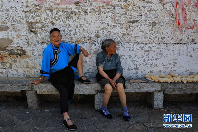 8月25日,在貴州安順鮑家屯,村民在乘涼休息。新華社記者 劉續(xù) 攝