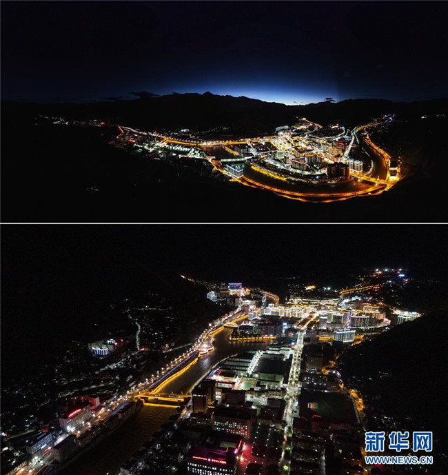 昌都市夜景(10月7日攝,無人機(jī)照片)。 新華社記者 晉美多吉 攝