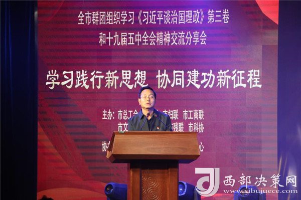 西部決策網(wǎng)訊 為深入貫徹習(xí)近平新時代中國特色社會主義思想,學(xué)習(xí)宣傳貫徹《習(xí)近平談治國理政》第三卷、黨的十九屆五中全會精神,加快群團(tuán)協(xié)同化建設(shè)進(jìn)程,11月5日,西寧市總工會牽頭召開市級群團(tuán)組織“學(xué)習(xí)踐行新思想 協(xié)同建功新征程”為主題的學(xué)習(xí)《習(xí)近平談治國理政》第三卷和黨的十九屆五中全會精神交流分享會,市委常委、宣傳部部長、市總工會主席王霞出席會議并講話。全市各群團(tuán)組織負(fù)責(zé)同志、勞模代表和干部職工群眾共300余人參加活動。