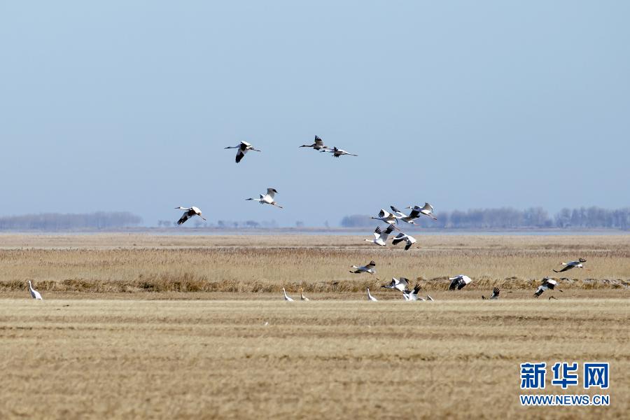 在內(nèi)蒙古扎賚特旗圖牧吉國家級自然保護區(qū)拍攝的白鶴(11月6日攝)。 新華社發(fā)(畢力格 攝)