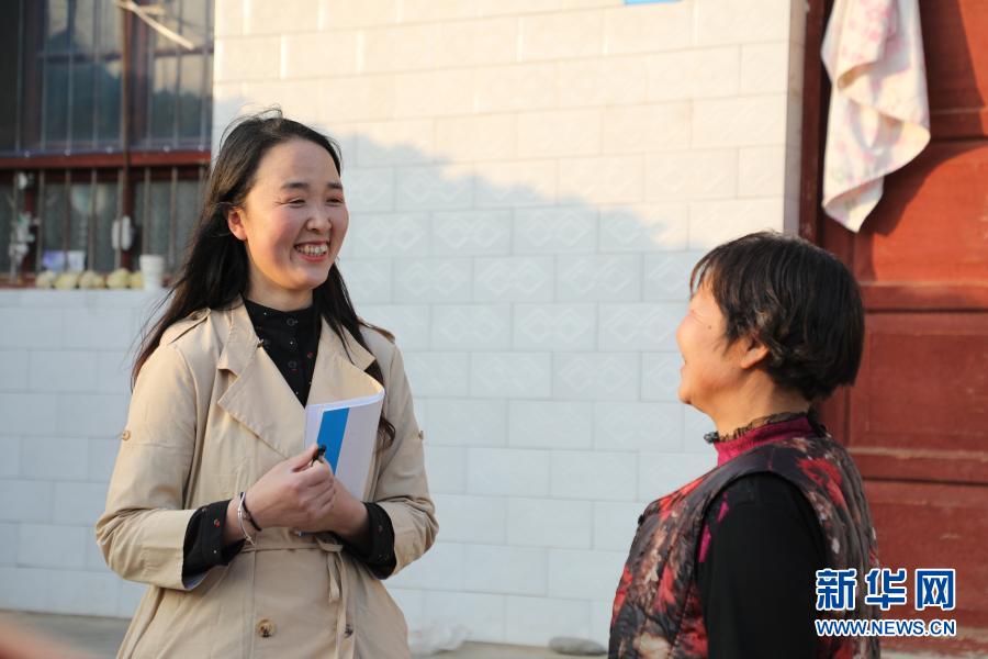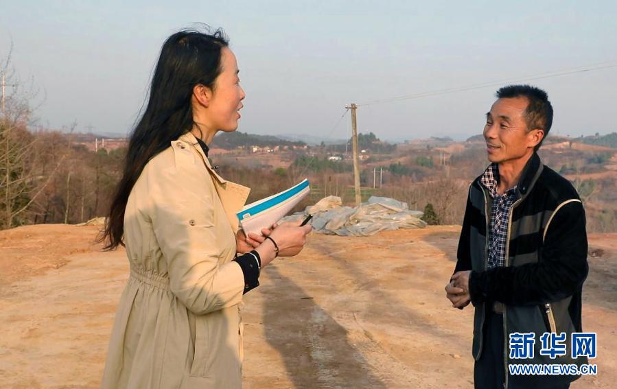 2月23日,在甘肅省隴南市徽縣水陽鎮(zhèn)石灘村,全國人大代表梁倩娟(左)同村民茍明交流。 新華社記者 張智敏 攝