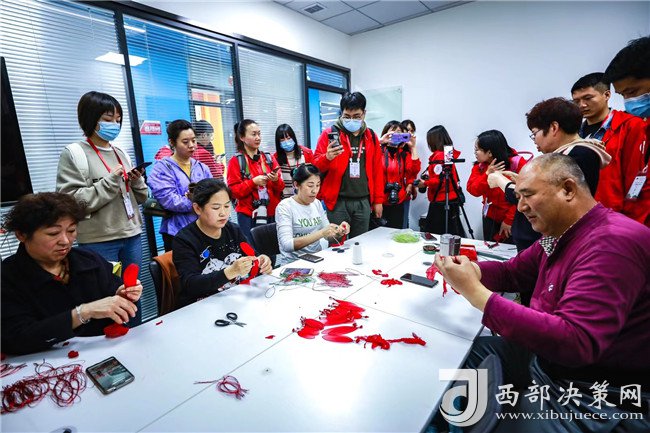 西部決策網(wǎng)訊 一折、一卷、六朵花瓣整齊羅列,細(xì)鐵絲緊緊繞圈固定,一朵火紅的手工花便成型了。“這個(gè)是我們的一些手工藝品,都是有延安特色的,如果你們想學(xué)的話,隨時(shí)來(lái),我們這里免費(fèi)培訓(xùn)。”3月30日,在延安市寶塔區(qū)電商直播融合孵化服務(wù)中心的直播間里,60歲的退休工人董智玲正在直播間里給網(wǎng)友直播手工藝品制作,引來(lái)了眾多記者的圍觀。
