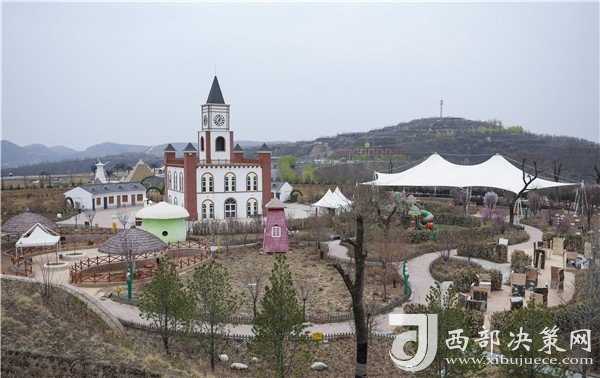 站在南溝村生態(tài)園最高處的觀景臺俯瞰景區(qū),紅色小樓錯(cuò)落有序、旁邊水庫綠水盈盈、遠(yuǎn)處山峰層層疊疊、成片的蘋果園劃出整齊的曲線,五顏六色的游樂設(shè)施裝點(diǎn)著黃土高原,讓人驚嘆山溝溝里竟然還有這樣養(yǎng)眼的好去處。