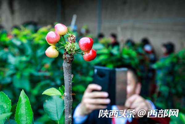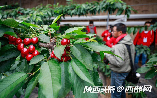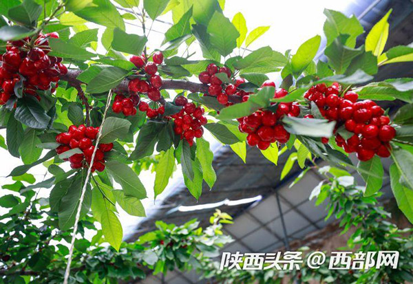 在櫻桃棚內(nèi),紅色的櫻桃一簇一簇簇?fù)碓跇渖希诰G油油的樹葉間顯得嬌艷欲滴。路寶告訴記者,子長的櫻桃可以趕在其他產(chǎn)地的櫻桃未上市前售賣,因此市場行情好,加上保存期長,適合現(xiàn)代物流的發(fā)展,從而產(chǎn)生了比較好的收益。“我們這個(gè)櫻桃可以在其他櫻桃還沒有上市的時(shí)候,借助現(xiàn)代物流賣到全國各地,甚至可以賣到櫻桃的主產(chǎn)區(qū)去。”