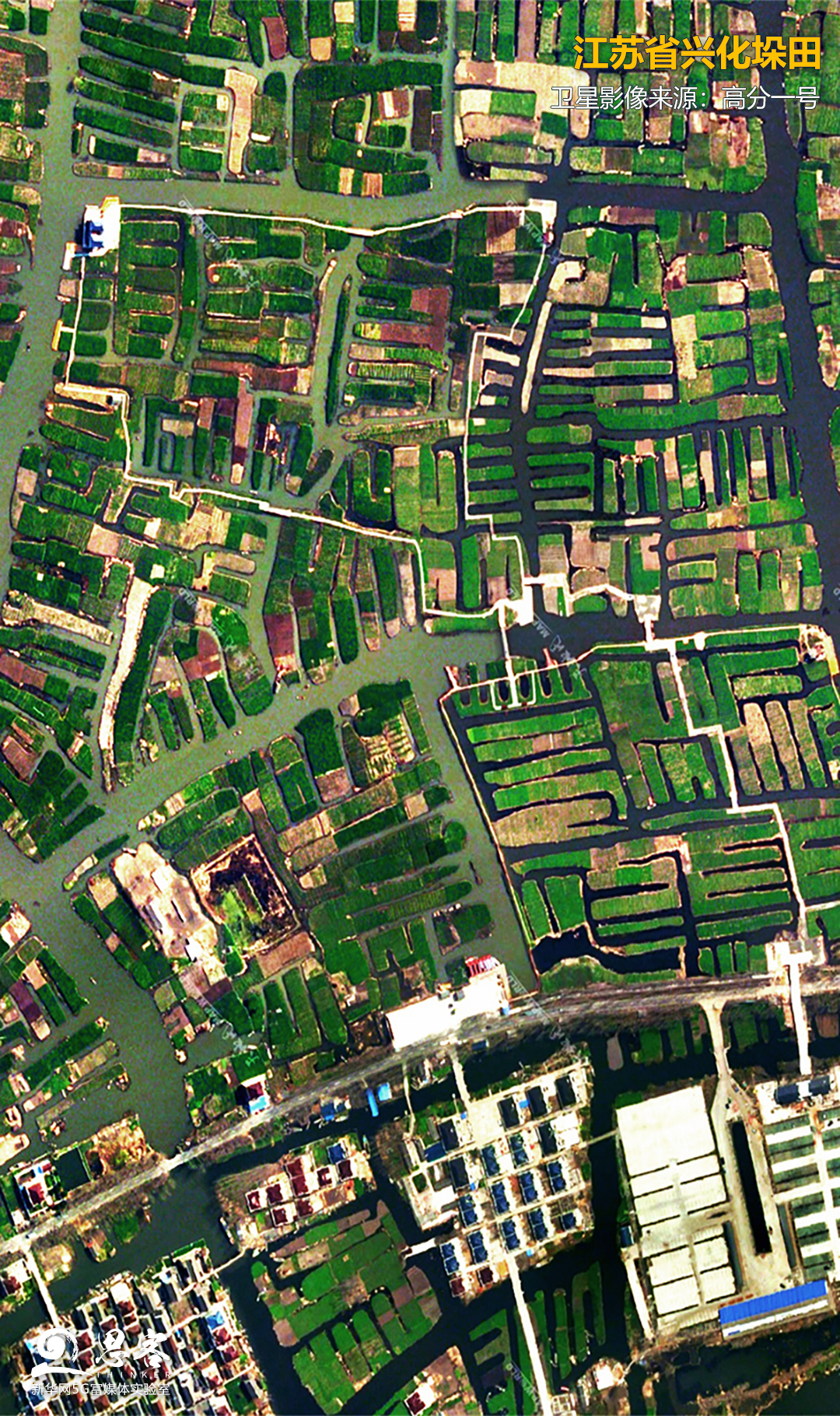 兩岸的水田和土壤形成的斑駁圖案