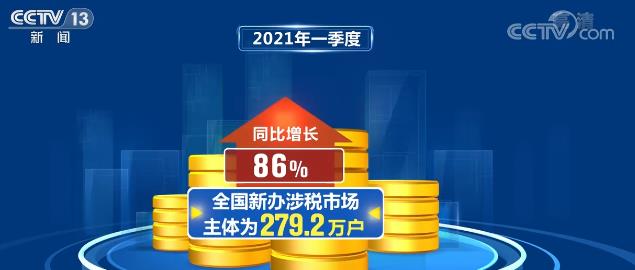 從稅收看經(jīng)濟|2021年一季度全國新辦涉稅市場主體為279.2萬戶 同比增長86%