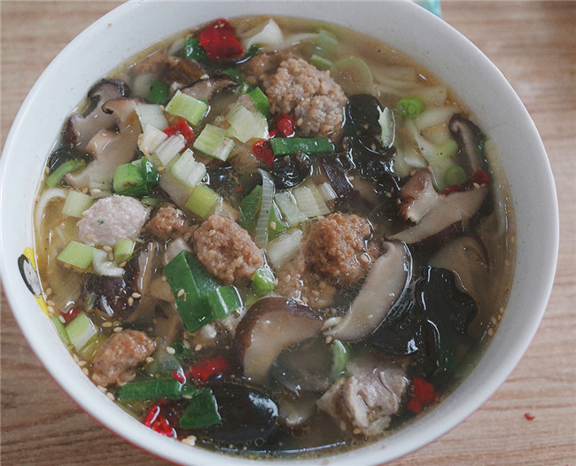 一碗18元的香菇面,里頭有香菇、蝦米、木耳、里脊肉片、汆肉丸子和油炸丸子等原料,再撒上蔥蒜和辣椒,香氣四溢。“以前還要放排骨和酥肉呢。”香菇面店的老板李瑞強(qiáng)說(shuō),父親1988年開(kāi)始賣(mài)香菇面,父親去世后,他在鎮(zhèn)上開(kāi)了店,希望能將這份味道長(zhǎng)長(zhǎng)久久傳承下去。