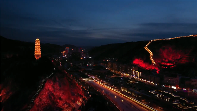 “民宿是第二屆夜經(jīng)濟(jì)夜生活節(jié)的重要板塊。”2020年,延安舉辦夜經(jīng)濟(jì)夜生活節(jié)期間,寶塔區(qū)副區(qū)長(zhǎng)李延武就曾表示,寶塔民宿要堅(jiān)持“特色化”,在彰顯紅色革命文化優(yōu)勢(shì)及綠色生態(tài)、黃土文化優(yōu)勢(shì)上下功夫,把延安民宿最優(yōu)、最亮的產(chǎn)品推介給廣大游客及消費(fèi)者。夜幕下的延安。