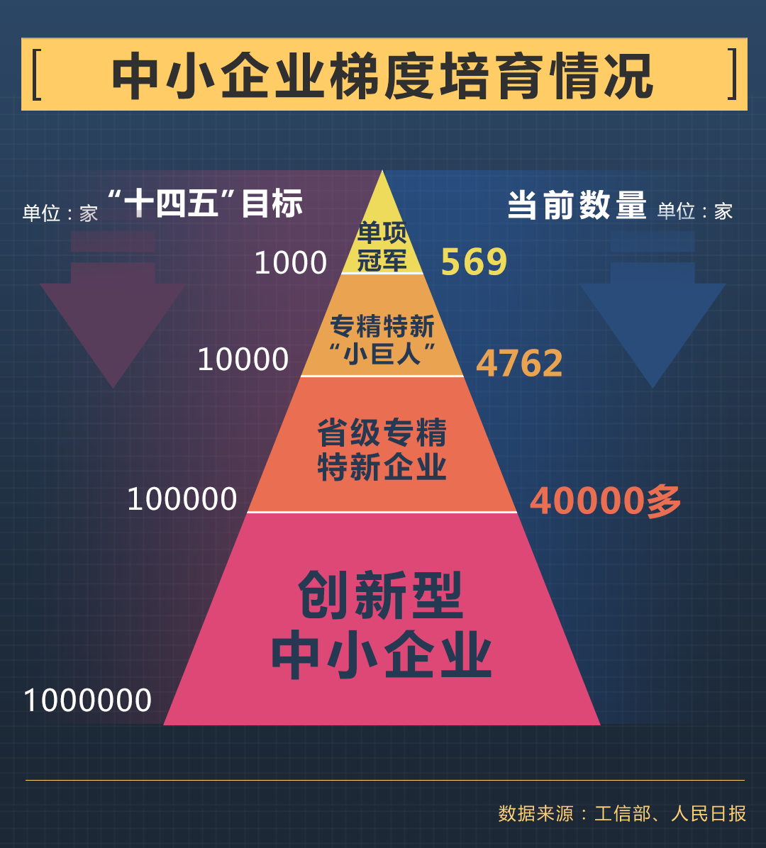 為了強(qiáng)化產(chǎn)業(yè)鏈韌性,工信部正在梯度培育優(yōu)質(zhì)企業(yè)。“十四五”期間,我國(guó)將培育1萬家專精特新“小巨人”企業(yè),創(chuàng)新型中小企業(yè)將達(dá)到百萬家。“小巨人”是梯度培育體系中,推動(dòng)中小企業(yè)由小到大、由大到強(qiáng)、由強(qiáng)變優(yōu)的關(guān)鍵交匯點(diǎn)。