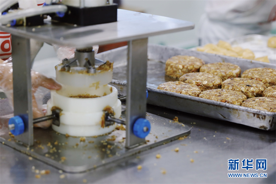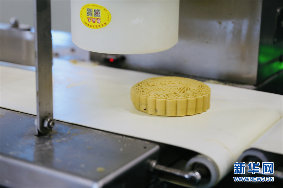 機器壓制出月餅花紋。鐘涓涓 攝