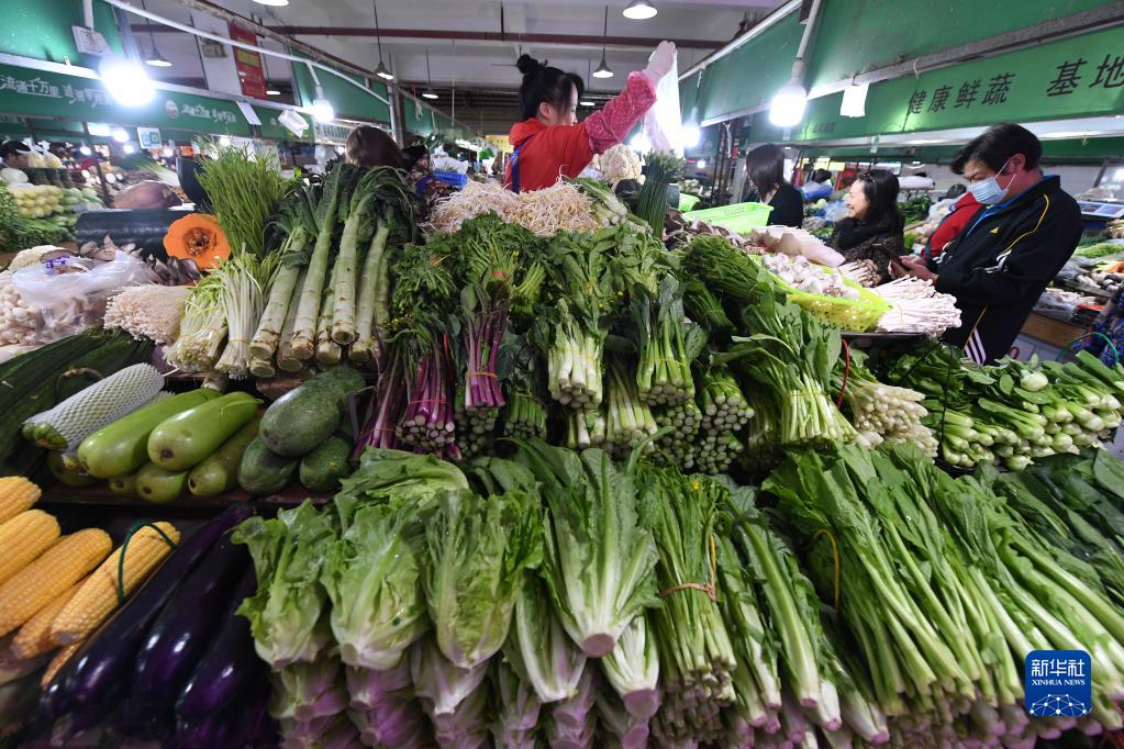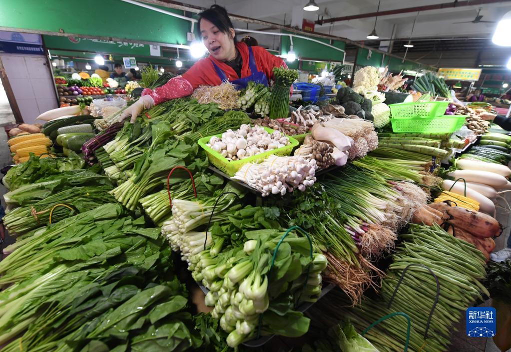 11月10日,在廣西南寧市濱湖路一家農(nóng)貿(mào)市場(chǎng),人們?cè)谶x購蔬菜。新華社記者 陸波岸 攝