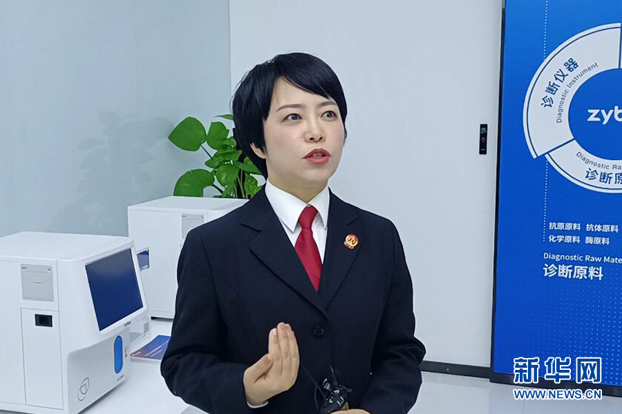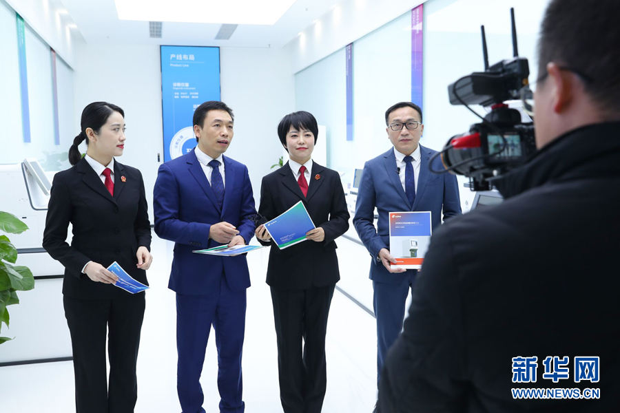 圖為直播中,企業(yè)技術(shù)負(fù)責(zé)人介紹企業(yè)的相關(guān)產(chǎn)品以及知識(shí)產(chǎn)權(quán)保護(hù)相關(guān)情況。新華網(wǎng)發(fā)(吳川嬌 攝)