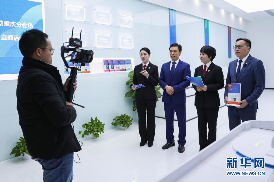 重慶知識(shí)產(chǎn)權(quán)法庭副庭長譚穎在直播中向網(wǎng)友普及知識(shí)產(chǎn)權(quán)保護(hù)的相關(guān)法律知識(shí)。新華網(wǎng)發(fā)(吳川嬌 攝)