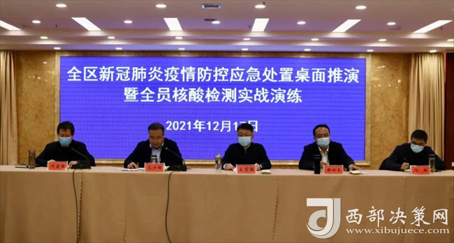 西部決策網(wǎng)訊(韓宗憲 通訊員 陳珊珊)12月17日,寶雞市鳳翔區(qū)新冠肺炎疫情防控應(yīng)急處置桌面推演暨全員核酸檢測(cè)實(shí)戰(zhàn)演練在白玉蘭酒店舉行。鳳翔區(qū)疫情防控專班、區(qū)疫情防控相關(guān)部門、各鎮(zhèn)、區(qū)流行病學(xué)調(diào)查組各成員單位等參加演練。區(qū)委區(qū)政府主要領(lǐng)導(dǎo)現(xiàn)場(chǎng)觀摩了本次實(shí)戰(zhàn)演練。