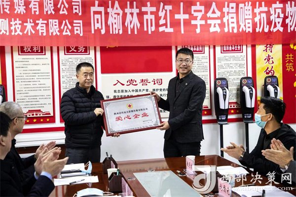 西部決策網(wǎng)訊 12月17日,榆林市政府會(huì)議室舉行疫情防控捐贈(zèng)儀式,我市兩家愛(ài)心企業(yè)向市委、市政府、榆林市紅十字會(huì)捐贈(zèng)抗疫物資,本次活動(dòng)有榆林市副市長(zhǎng)楊東明、市政府副秘書(shū)長(zhǎng)崔紅軍、市紅十字會(huì)專職副會(huì)長(zhǎng)惠斌、市衛(wèi)健委疾控科科長(zhǎng)高婷婷、陜西國(guó)盛高科質(zhì)量檢測(cè)技術(shù)有限公司總經(jīng)理王蕾蕾、陜西壹玖遠(yuǎn)大影視傳媒有限公司總經(jīng)理康樂(lè)、北京泛亞智庫(kù)國(guó)際咨詢中心鄉(xiāng)村振興部部長(zhǎng)兼陜西壹玖遠(yuǎn)大影視傳媒有限公司高級(jí)顧問(wèn)劉團(tuán)元,市紅十字會(huì)全體人員參加,市衛(wèi)健委黨組書(shū)記、主任高懷和主持。市政府副秘書(shū)長(zhǎng)崔紅軍、市紅十字會(huì)專職副會(huì)長(zhǎng)惠斌、市衛(wèi)健委黨組書(shū)記、主任高懷和主持、副市長(zhǎng)楊東明和市政府副秘書(shū)長(zhǎng)崔紅軍出席并向捐贈(zèng)企業(yè)頒發(fā)愛(ài)心企業(yè)獎(jiǎng)牌。