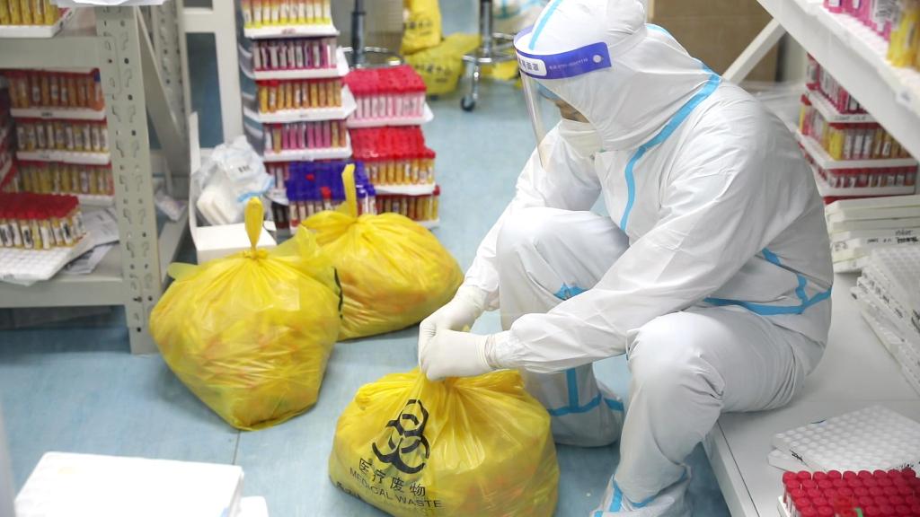 工作人員告訴記者,對于檢測后剩余的標(biāo)本,他們會嚴(yán)格按照醫(yī)療廢棄物品的相關(guān)規(guī)定進行處理。比如,對于檢測呈陰性的標(biāo)本,會將其統(tǒng)一裝在黃色的垃圾袋中進行消毒,并在垃圾袋上貼好警示封口,進行高壓滅菌等一系列步驟后,送至下游公司進行再處理。
