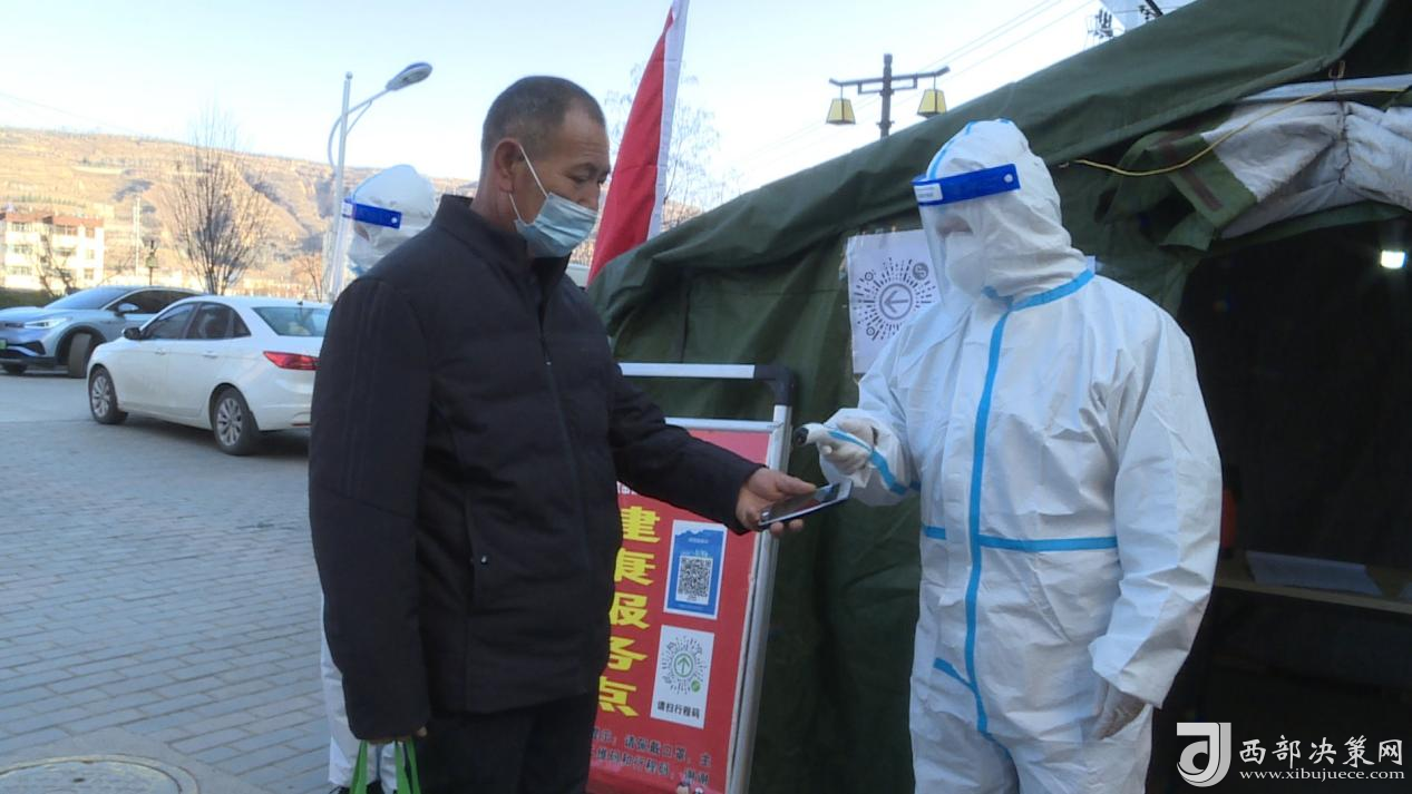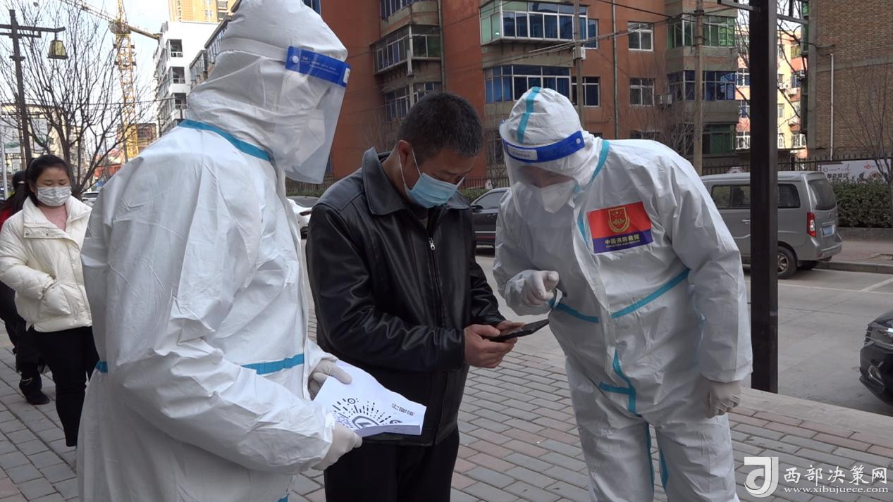 在印臺區(qū)濟陽新城小區(qū)核酸檢測采樣現(xiàn)場和小區(qū)門口,指戰(zhàn)員們分工協(xié)作,一邊引導居民有序排隊進入核酸檢測采樣區(qū),另一邊配合小區(qū)工作人員檢查進出小區(qū)群眾的“雙碼”和體溫。由于采樣群眾較多,指戰(zhàn)員們一遍遍地提示群眾出示健康碼,戴好口罩,有序排隊、不插隊,不交談,不聚集,與他人保持1米以上間隔等防疫要求,并講解核酸檢測工作流程,幫助老年人操作手機進行掃碼,耐心細致地為遇到問題的群眾進行解答,確保檢測有序進行,有效提高了檢測速度。
